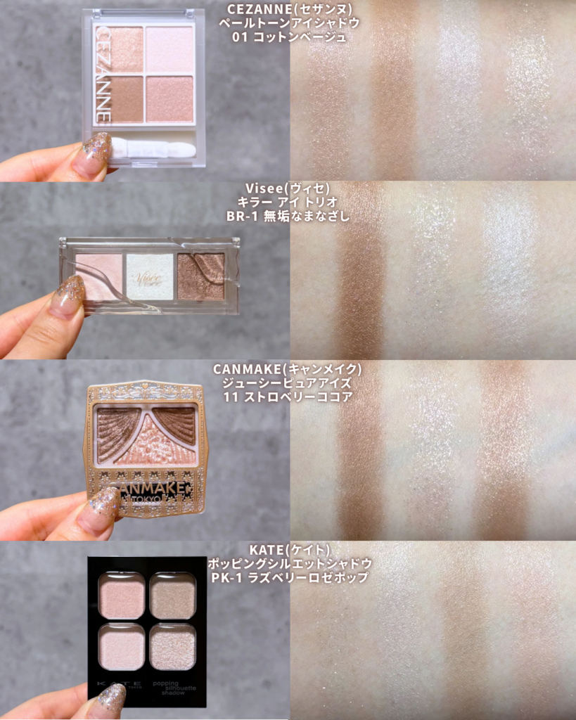 今回は、ドラッグストアで手軽に購入できて、毎日使いしやすい「ピンク系プチプラブラウン」をブルベ目線で4つ厳選しました。